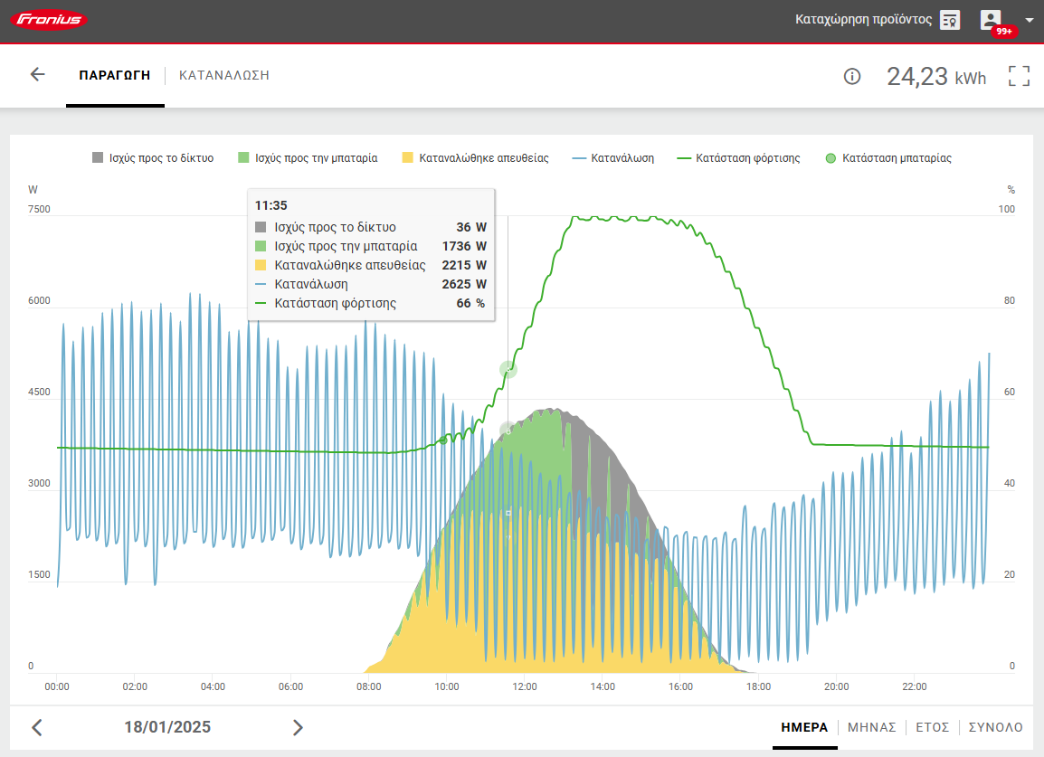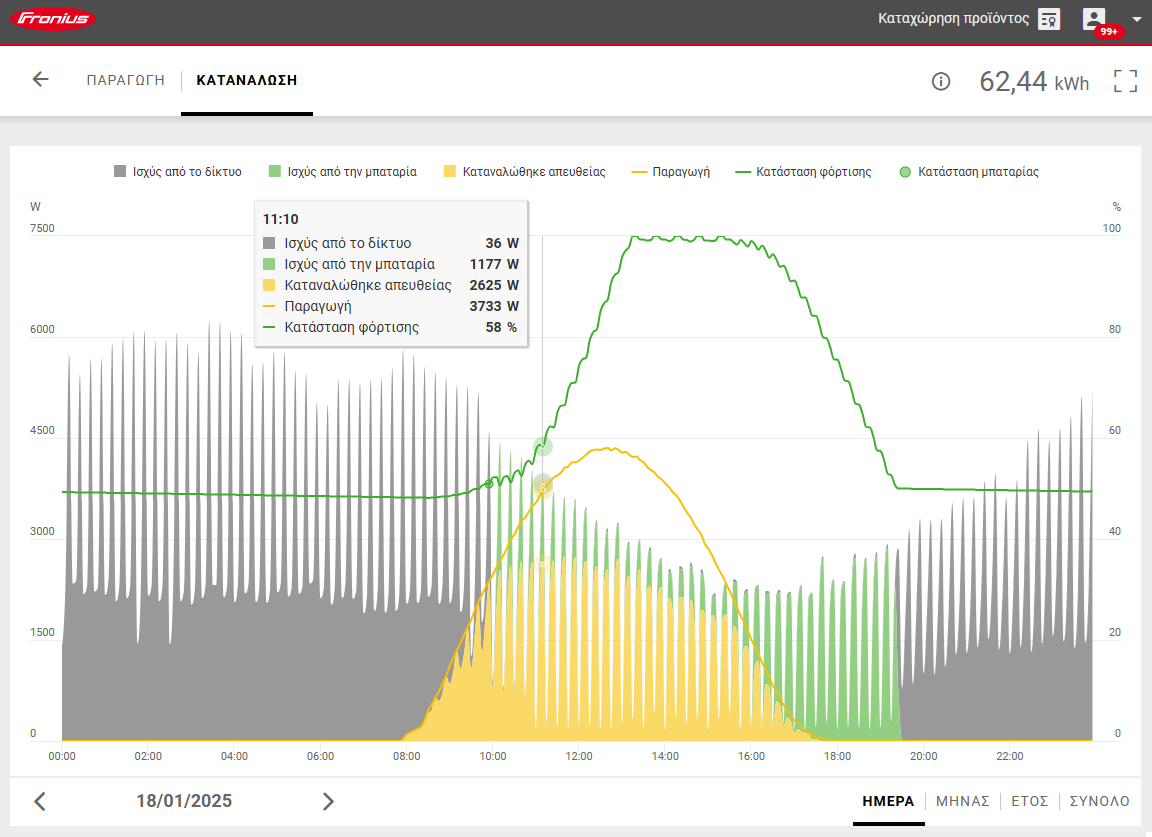 Net Metering με δυνατότητα Λειτουργίας Ανάγκης (Back-up) στην Αρτέμιδα Αττικής με Φωτοβολταικά 9KW και Μπαταρίες Λιθίου 10KWh